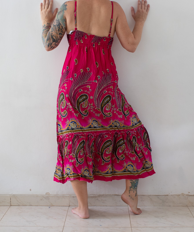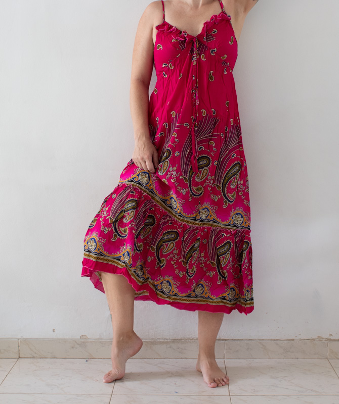 Material: 100% rayón. Pequeñas variaciones en el color, teñido de la prenda y costuras son de esperarse y son completamente normales.